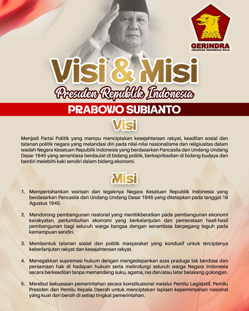 - Visi: Memfokuskan pada ketahanan nasional, kemandirian ekonomi, dan diplomasi global yang kuat.