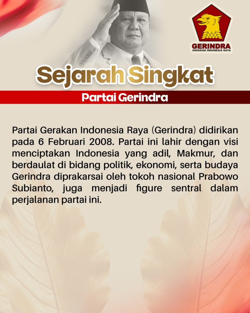 Partai Gerindra bergerak, berjuang dengan nilai-nilai dan semangat patriotisme untuk meneruskan cita-cita penerus bangsa demi mewujudkan Indonesia Adil & Makmur untuk semua