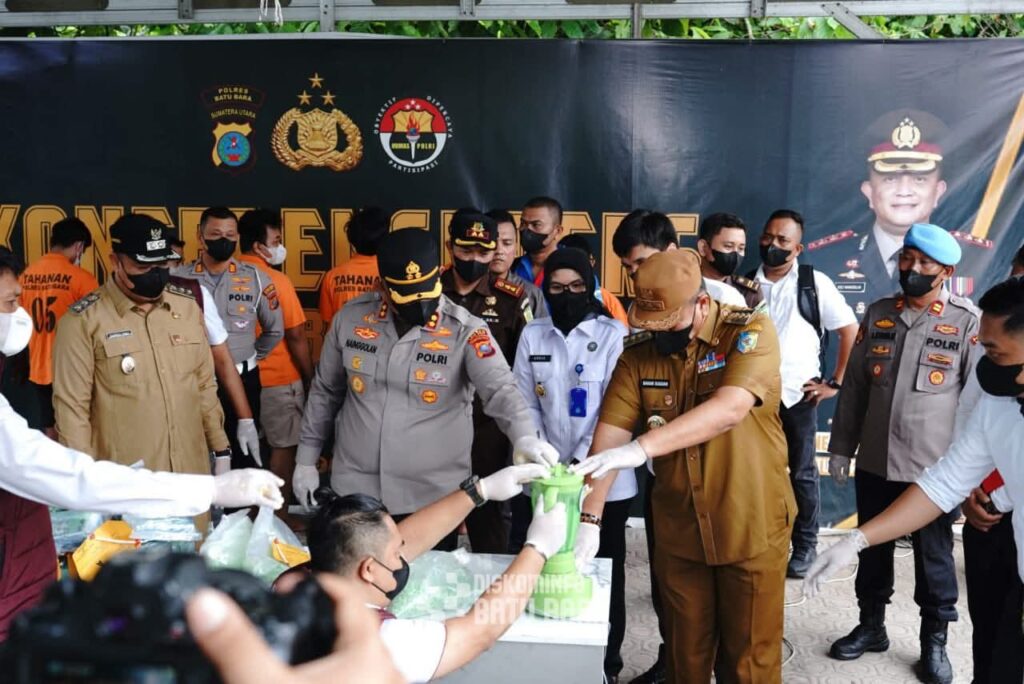 “Barang bukti yang akan di musnahkan sangat banyak yang ternyata kebanyakan dari luar Kabupaten Batu Bara. Tentunya jika ini beredar akan mempunyai daya rusak yang sangat luar biasa untuk masyarakat Kabupaten Batu Bara,” ujar Bupati Bapak Baharuddin