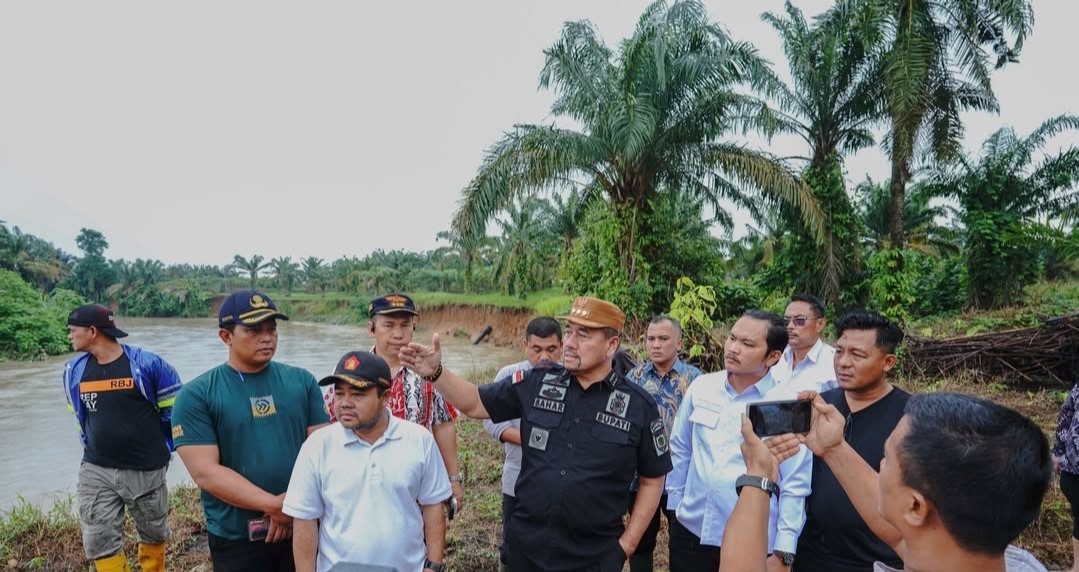 Gerindrasumut.id | Bupati Batu Bara H. Baharuddin Siagian, S.H., M.Si., melakukan peninjauan langsung ke lokasi sungai yang mengalami erosi dan hampir mengenai rumah warga di Desa Tanjung Kasau Kecamatan Laut Tador bersama anggota DPRD, para OPD, camat dan para kades, Jumat (28/11/2025).