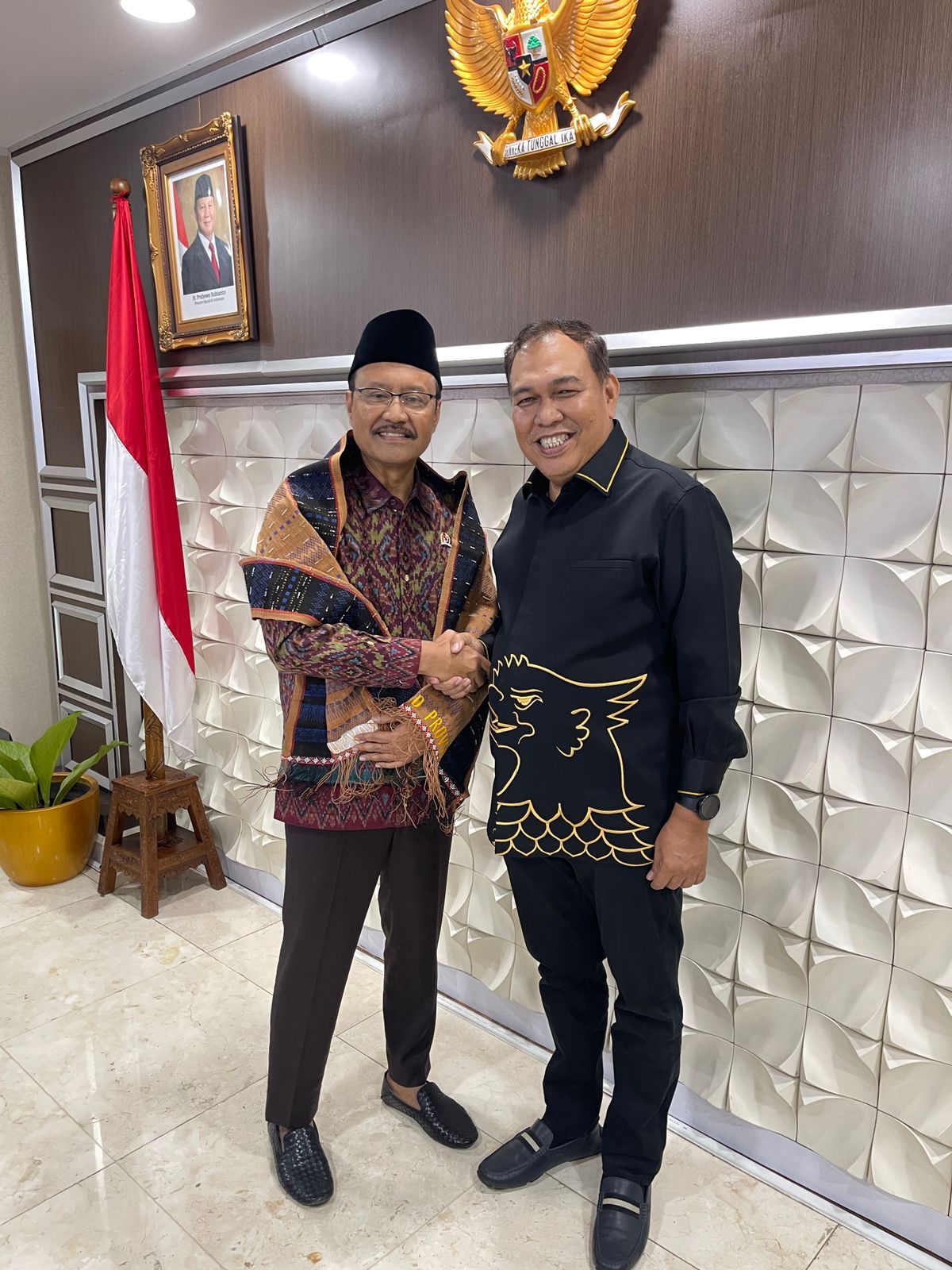 Gerindrasumut.id | Jakarta 19 September 2025, Ketua Komisi E DPRD Sumatera Utara H Subandi bersama rombongan anggota melakukan kunjungan kerja ke Kementerian Sosial Republik Indonesia. Rombongan diterima langsung oleh Menteri Sosial RI, Syaifullah Yusuf, didampingi Wakil Menteri Agus Jabo Priyono, dalam suasana hangat dan penuh kekeluargaan.