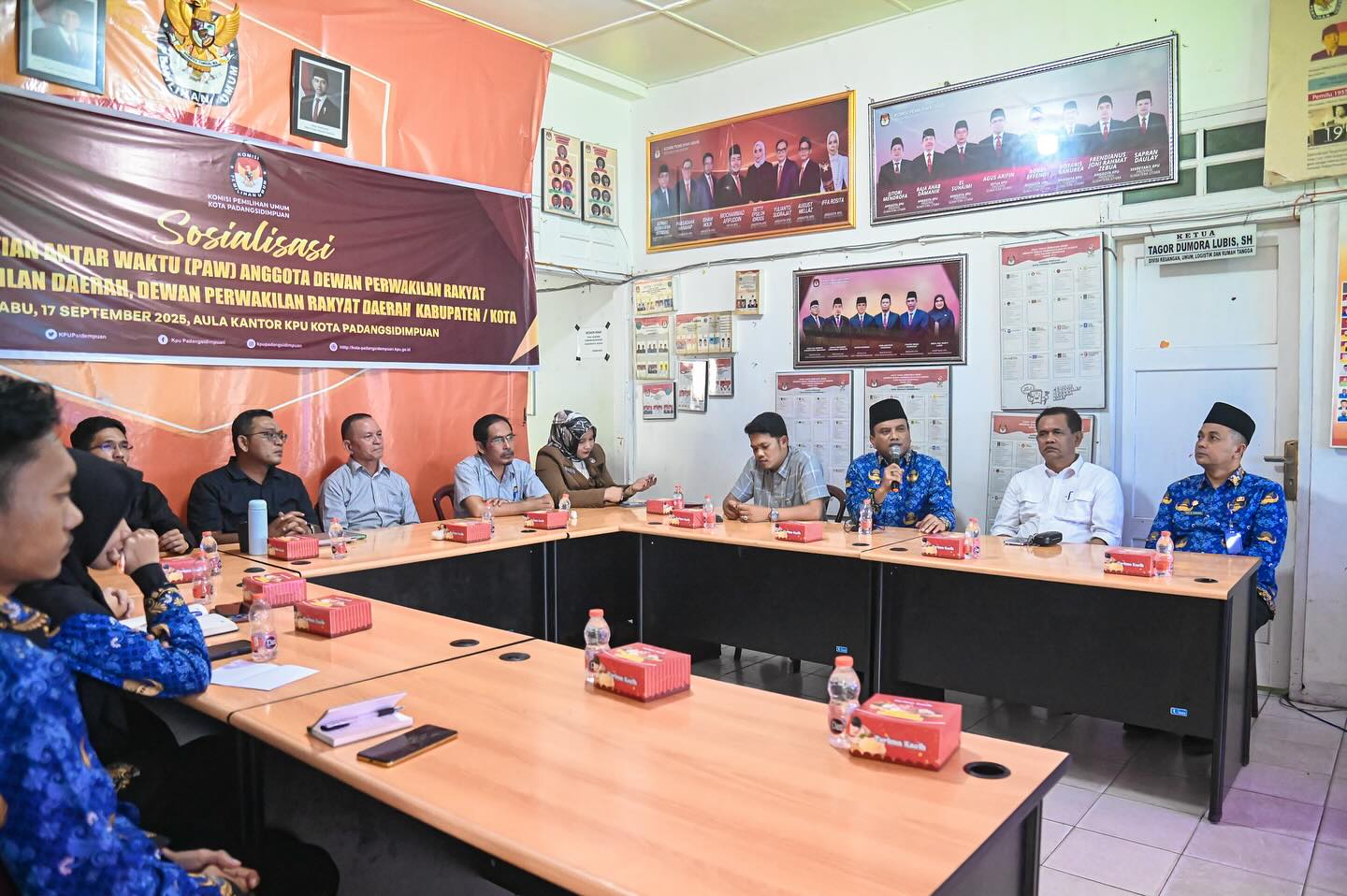 Gerindrasumut.id | Padangsidempuan, 18 September 2025, Komisi Pemilihan Umum (KPU) Kota Padangsidimpuan menggelar Rapat Koordinasi (Rakor) Pengelolaan Penggantian Antarwaktu (PAW) Anggota DPRD Provinsi dan DPRD Kabupaten/Kota di Aula Kantor KPU Kota Padangsidimpuan, Rabu (17/09/2025).
