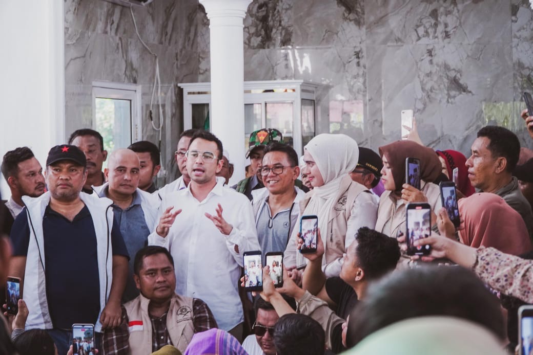 Raffi melakukan kunjungan di dua titik posko pengungsian yaitu di Mesjid Raya Azizi Tanjung Pura dan di Desa Kampung Lalang Tanjung Pura.
