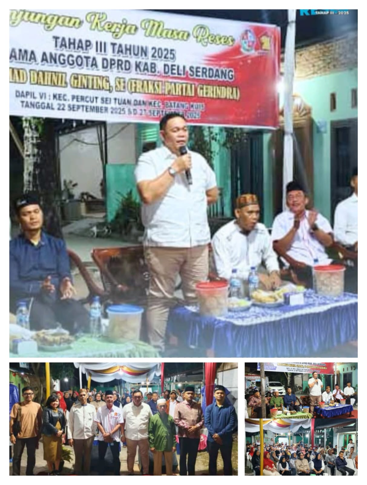 Gerindrasumut.id | Deli Serdang-Dahnil Ginting anggota DPRD Deli Serdang Fraksi Gerindra melaksanakan reses ke-III untuk menyerap aspirasi masyarakat di Desa Bandar Khalifah Kecamatan Percut Sei Tuan Kabupaten Deli Serdang Provinsi Sumatera Utara, Senin (22/9/2025)