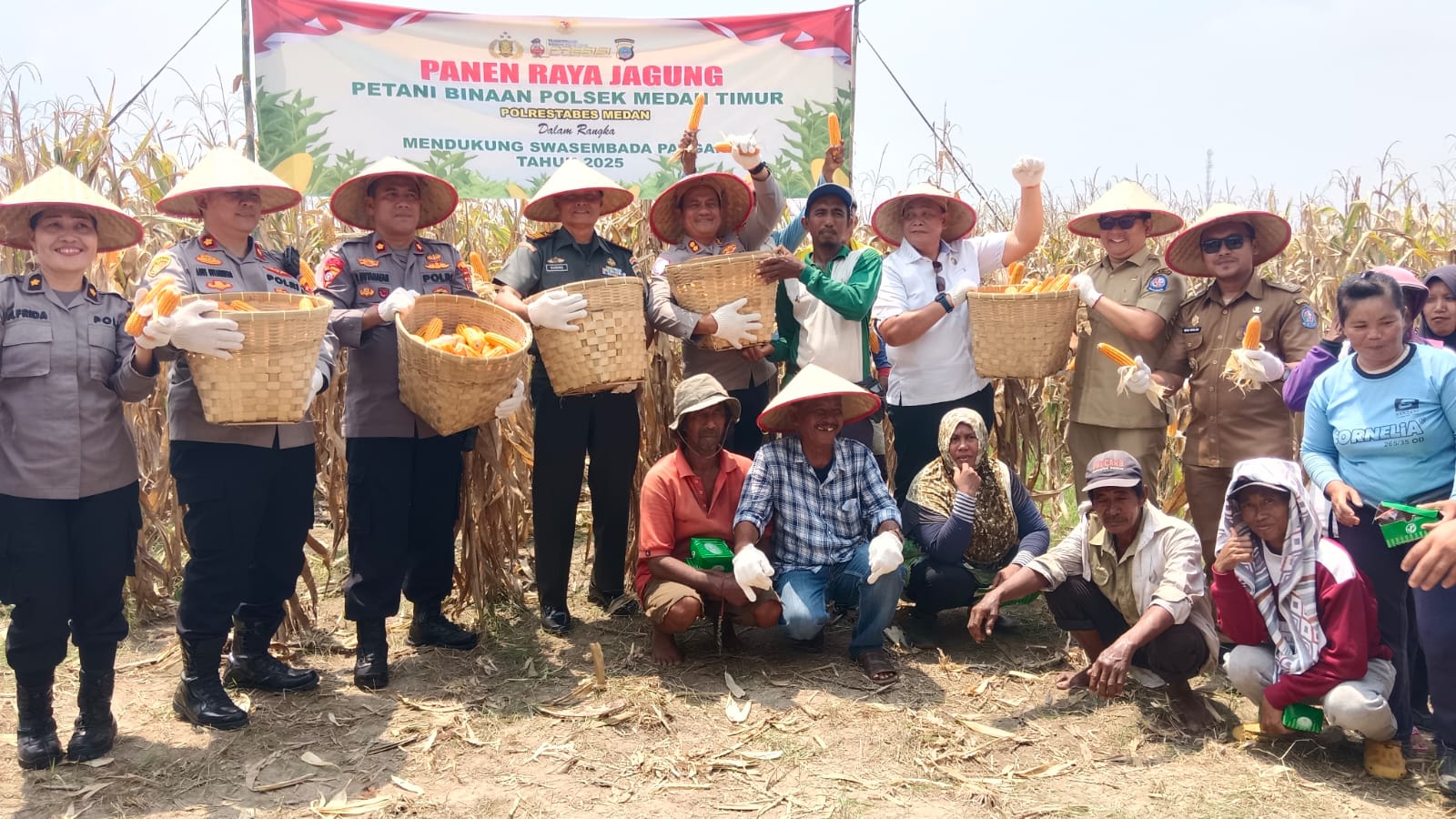 Gerindrasumut.id | Deli Serdang – Dalam upaya mendukung program pemerintah menuju swasembada pangan tahun 2025, Polsek Medan Timur Polrestabes Medan menggelar panen raya jagung bersama petani binaan di Desa Sampali, Kecamatan Percut Sei Tuan, Selasa (19/8/2025).