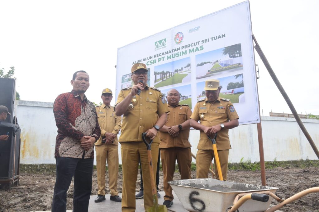 “PT Musim Mas secara proaktif mengambil bagian dalam pembangunan alun-alun di Desa Saentis, Kecamatan Percut Sei Tuan. Luas kawasan yang dibangun kurang lebih 5.000 meter persegi atau sekitar 40 x 120 meter, dengan anggaran sekitar Rp1,9 miliar. Masa pembangunan diperkirakan lima hingga enam bulan,” ujar Sarifudin.