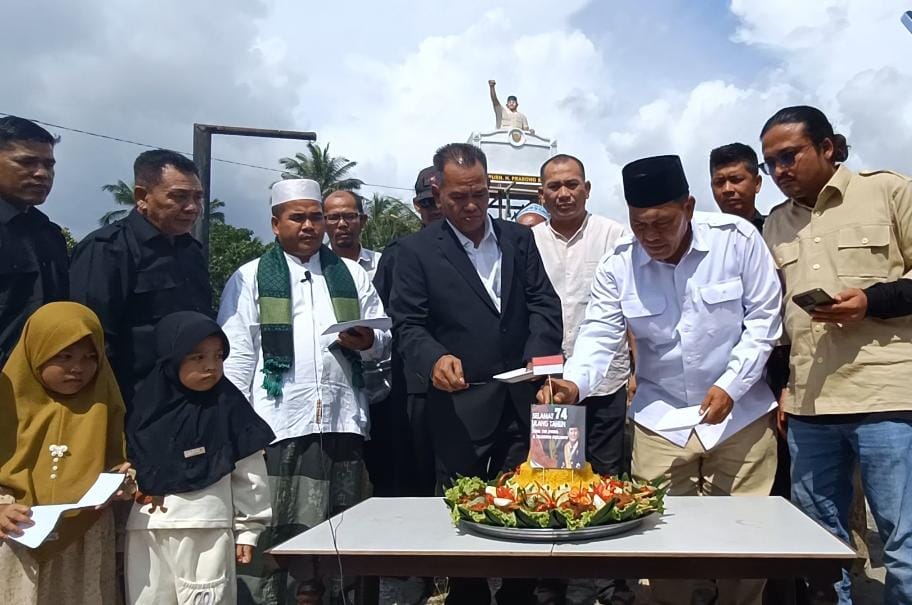 Gerindrasumut.id | Padangsidempuan, Masyarakat Padangsidimpuan turut merayakan syukuran peringatan hari kelahiran Presiden Republik Indonesia ke-8 dengan menggelar acara potong tumpeng dan santunan anak yatim piatu. Acara ini dilaksanakan di Monumen Persatuan dan Perjuangan Presiden Prabowo Subianto, yang terletak di Lubuk Naga, Padangsidimpuan, Sumatera Utara.