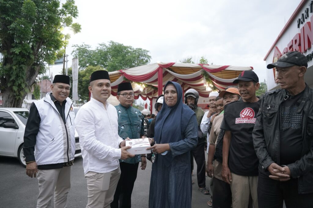 Suasana kebersamaan semakin terasa hangat saat acara dilanjutkan dengan pembagian 150 paket sembako berupa beras kepada masyarakat yang membutuhkan. Bantuan tersebut diharapkan dapat meringankan beban masyarakat serta menghadirkan kebahagiaan di tengah bulan suci Ramadhan.