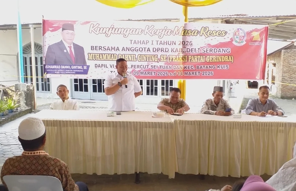 Gerindrasumut.id | Deli serdang – Rabu 11 Maret 2026, Anggota DPRD Kabupaten Deli Serdang dari Fraksi Partai Gerindra, Muhammad Dahnil Ginting, melaksanakan kegiatan reses di Desa Percut, Kecamatan Percut Sei Tuan. Kegiatan tersebut dimanfaatkan sebagai ajang silaturahmi sekaligus menyerap aspirasi masyarakat secara langsung.
