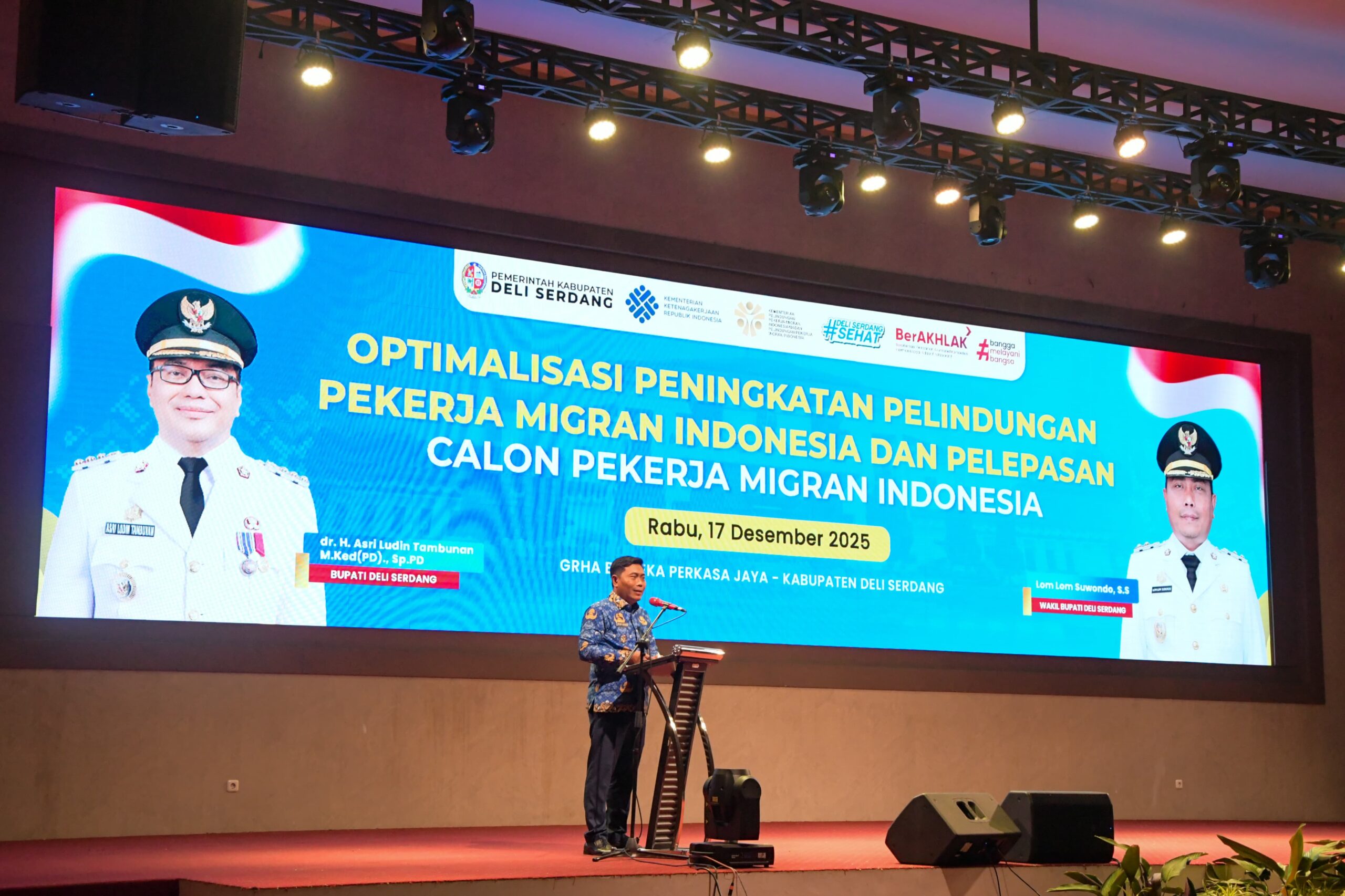 Wakil Bupati (Wabup) Deli Serdang, Lom Lom Suwondo SS yang melepas keberangkatan ke-26 CPMI tersebut di Grha Bhineka Perkasa Jaya, Rabu (17/12/2025), menyampaikan Pemkab Deli Serdang memiliki komitmen kuat untuk memastikan seluruh PMI asal Deli Serdang mendapat perlindungan yang layak, mulai dari sebelum berangkat, selama bekerja, hingga kembali ke tanah air.