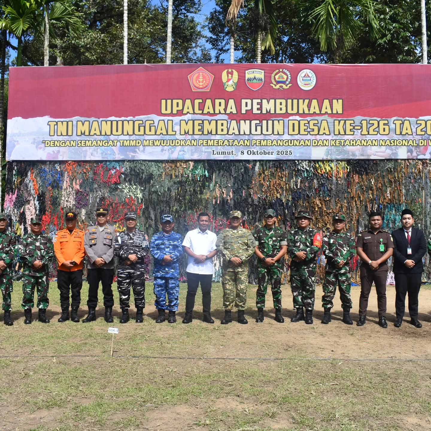 Upacara Pembukaan TMMD Ke-126 TA. 2025 Kodim 0211/TT yang digelar di Lapangan Bola Kel.Lumut yang masih dalam Kecamatan Lumut pada pagi hingga siang (08/10). Bertindak sebagai Inspektur Wakil Bupati Tapteng Mahmud Efendi Lubis Dan Satgas TMMD Lekol Inf Fernando Batabara,S.Sos.,M.Han Dandim 0211/TT sebagai Perwira Upacara Kapten Cke Firman Sitompul Danramil 02/Sorkam Komandan Upacara Lettu Inf Beringin Limbong Danramil 05/Kolang, dan Perwira Keamanan Letda Inf M.Pardosi